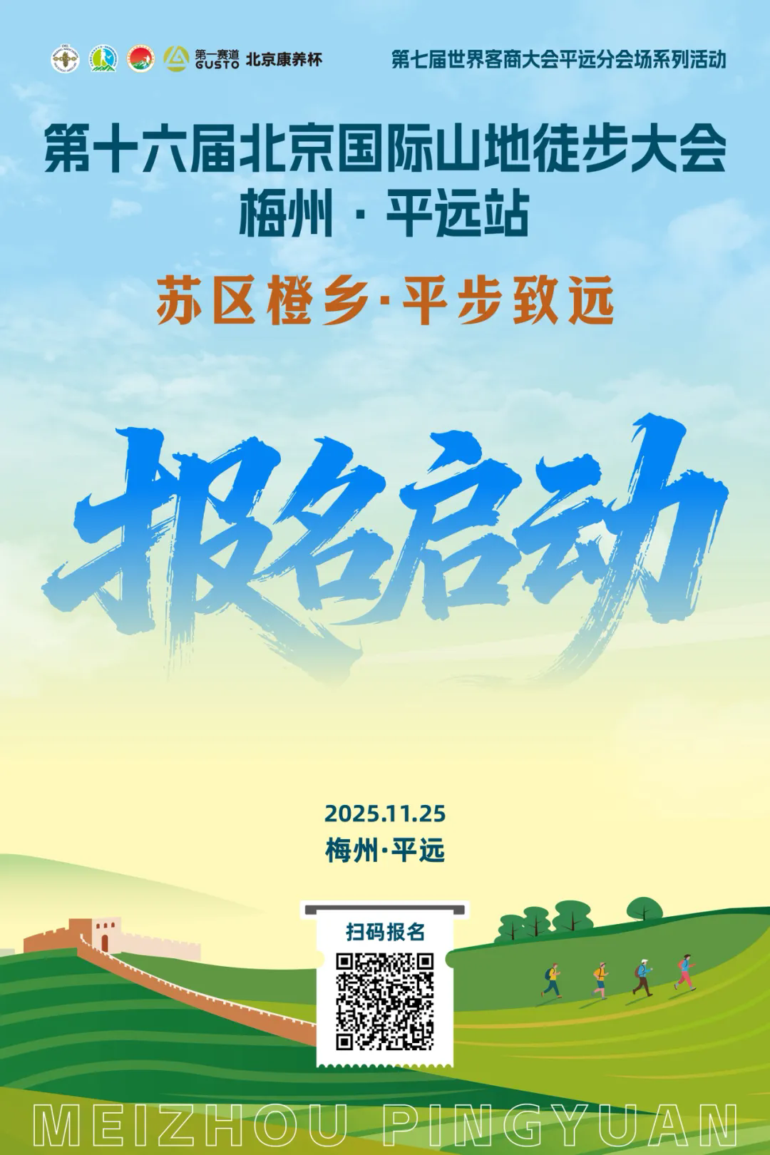 11月25日开走!第十六届北京国际山地徒步大会梅州·平远站,等你来→ 2025-10-31 11:26 平远旅游 8 第十六届北京国际山地徒步大会梅州·平远站 定于11月25日开走! 等你来报名 ↓↓↓ 1.活动概况 时间:2025年11月25日(星期二)08:00-14:00 地点:梅州市平远县长田镇 2.活动设置 3.活动路线 注:活动当日,除本次徒步大会外,主办方将在起终点安排一系列活动。 编辑:李舒宇 审核:练海林