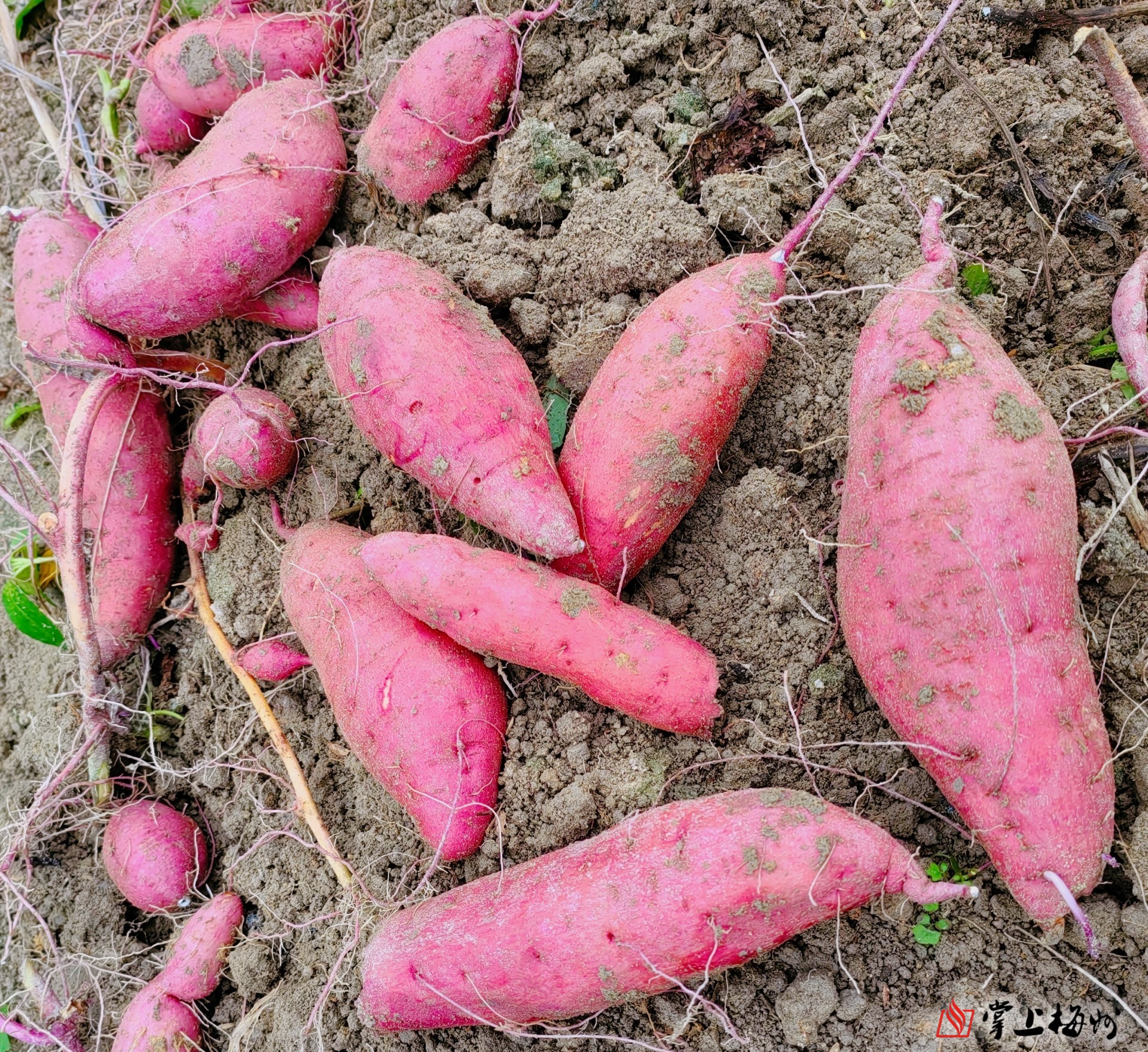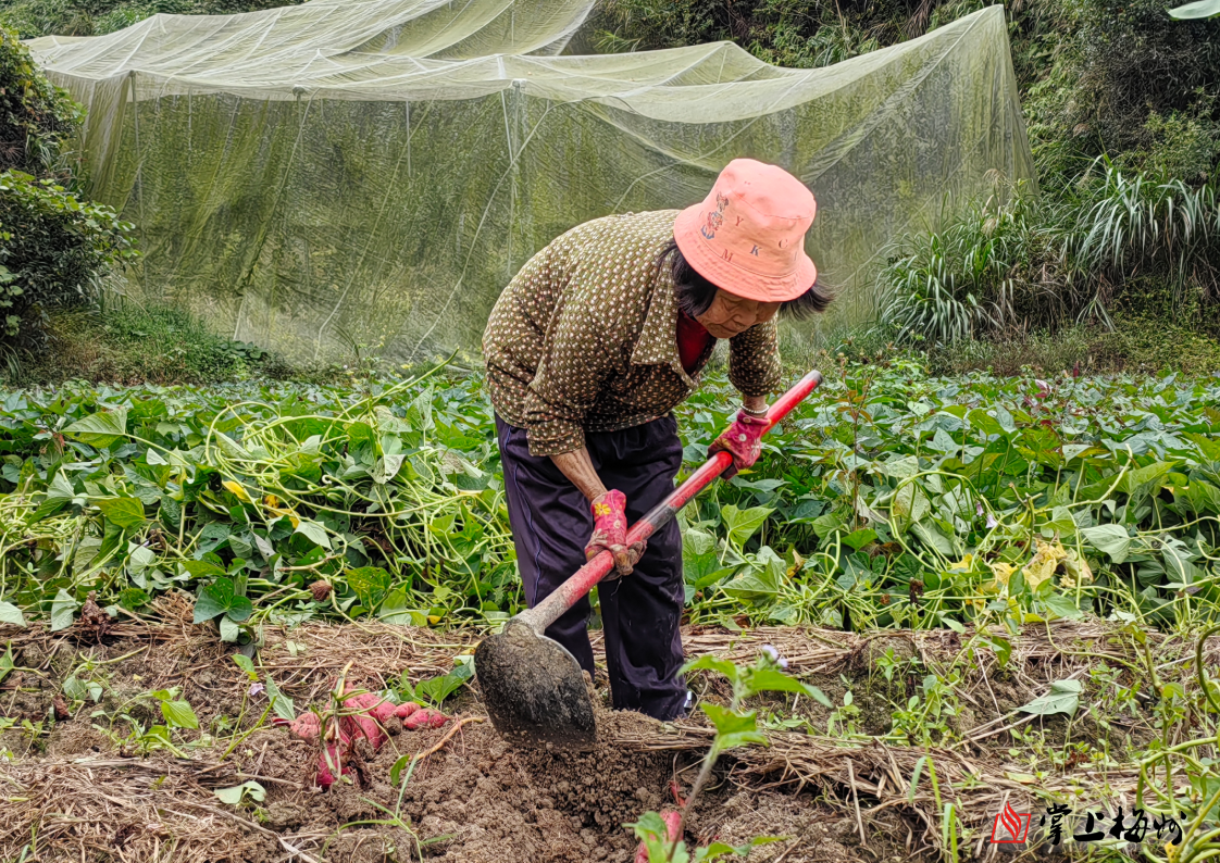 走进上远村红薯种植基地,连片的藤蔓青紫相间、生机勃勃。村民们分工协作,有的挥锄翻土,有的俯身拾薯。刚出土的红薯颜色鲜红、大小匀称,不一会儿便堆成一座座“小红山”。据介绍,这里种植的是普薯32号品种,由仁居镇驻镇帮镇扶村工作队于2021年引进。该品种具有甘甜细嫩、松软无筋的独特口感,深受消费者喜爱。