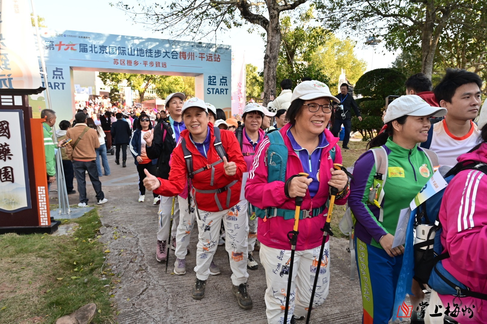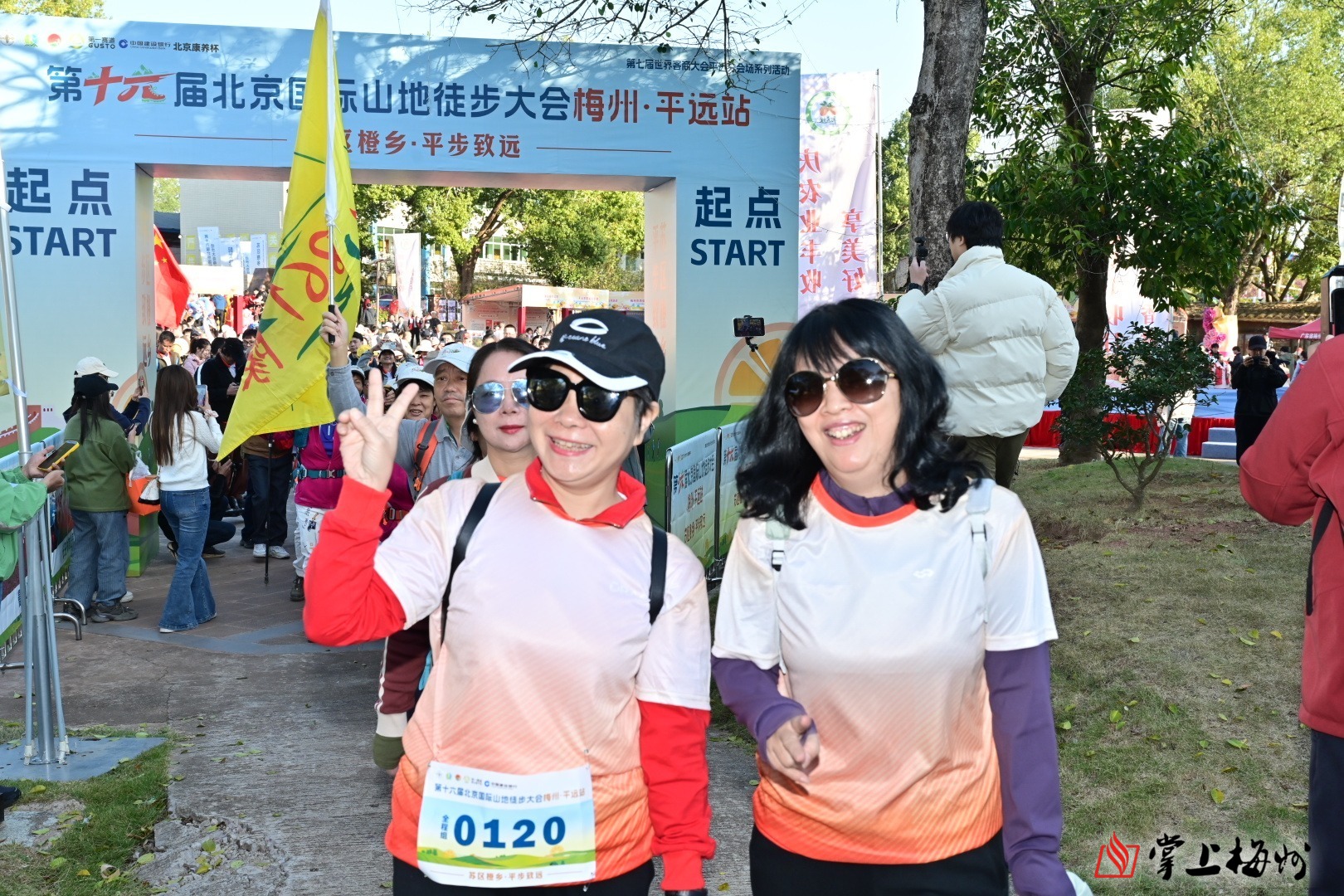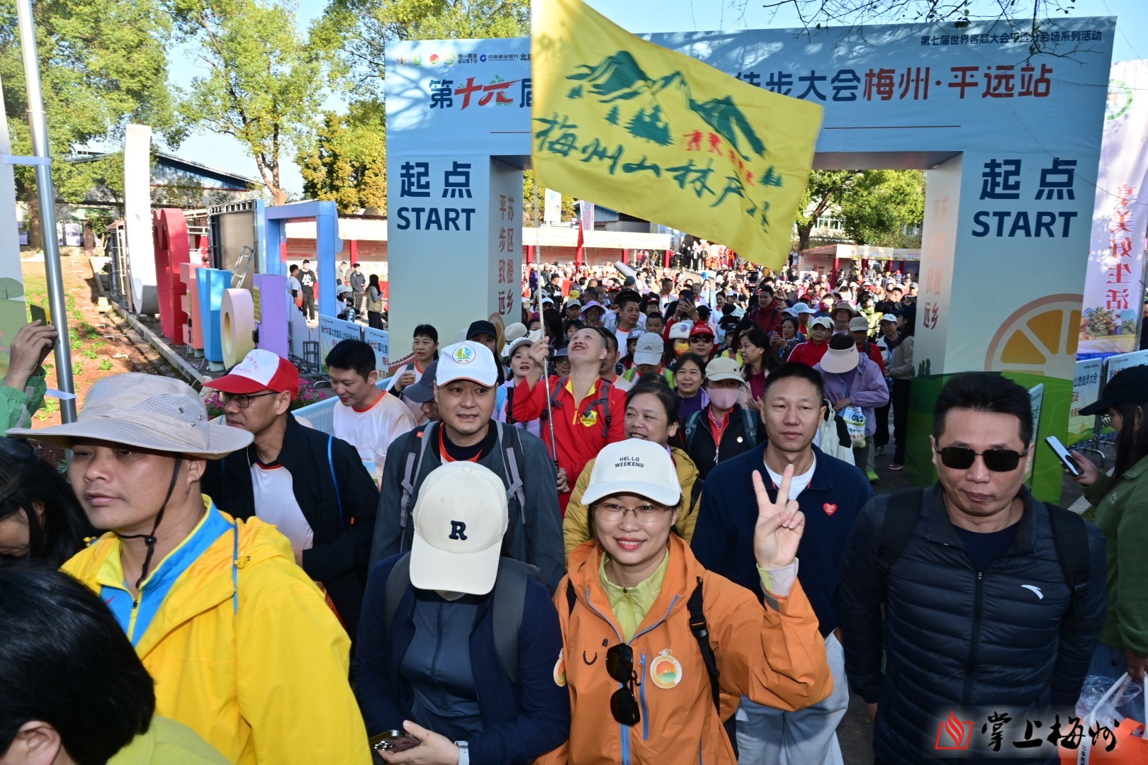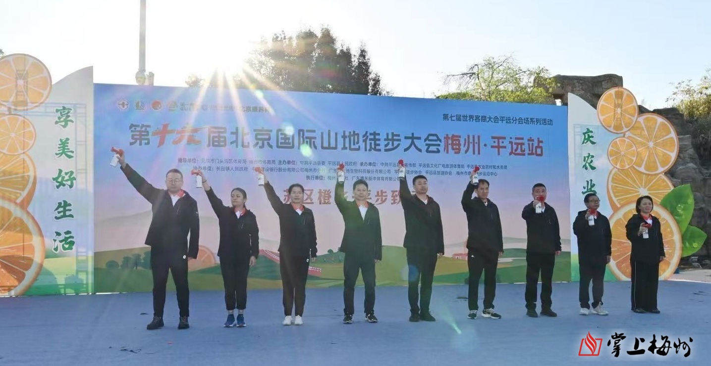 掌上梅州讯 11月25日上午,第十六届北京国际山地徒步大会梅州·平远站在长田镇曼佗山庄鸣笛开走,数千名徒步爱好者齐聚“橙乡”,用脚步丈量平远的生态之美,感受运动激情与乡村振兴的同频共振。
