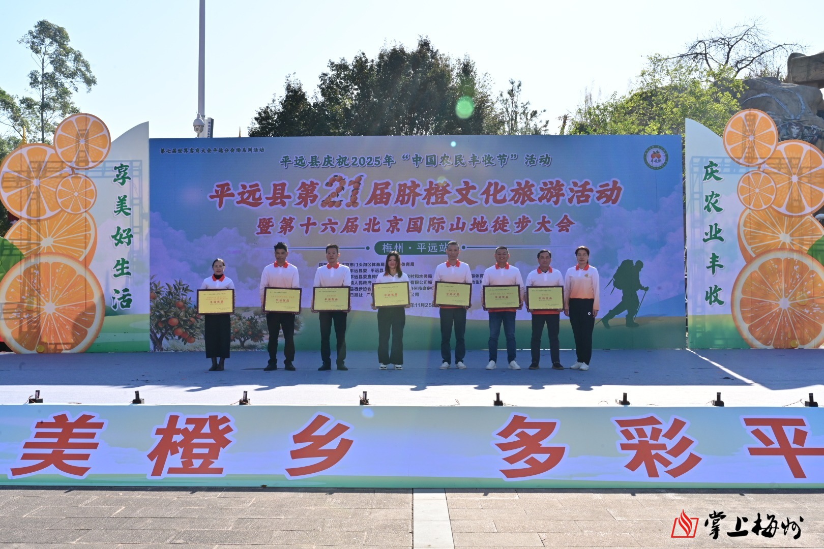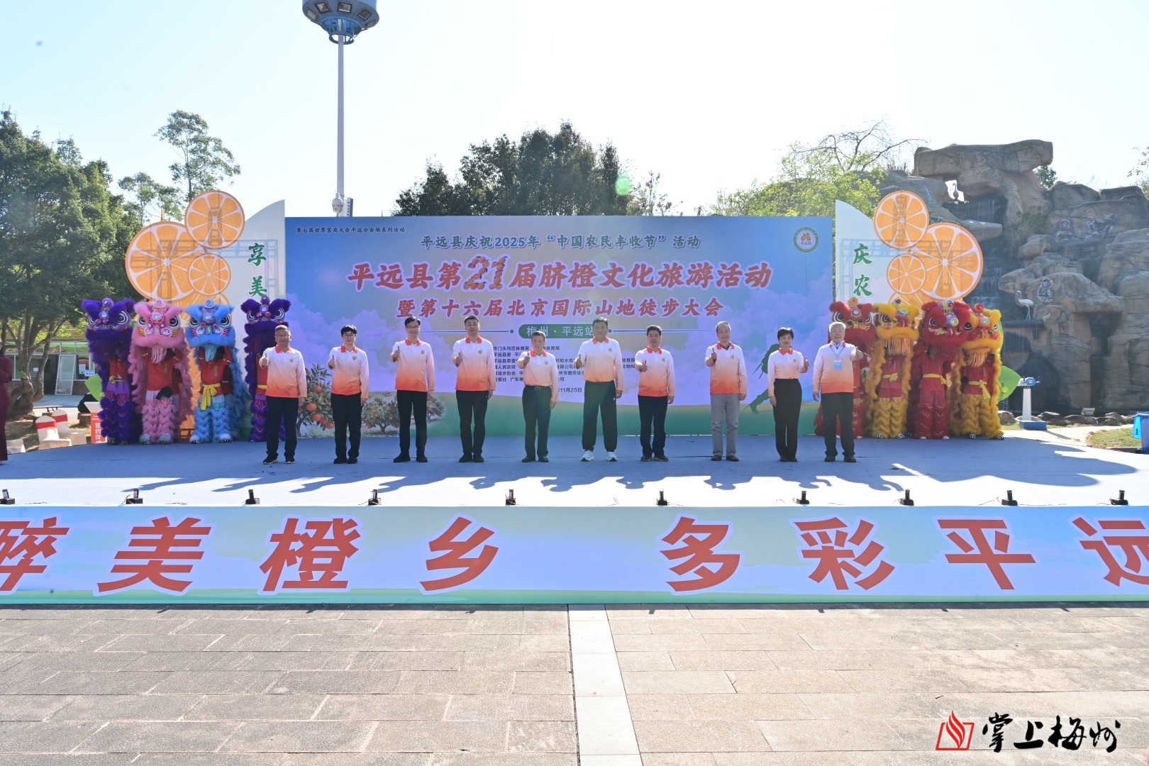 掌上梅州讯 11月25日上午,在第七届世界客商大会隆重召开之际,平远县第二十一届脐橙文化旅游活动暨第十六届北京国际山地徒步大会梅州·平远站启动仪式在长田镇曼佗山庄举行。