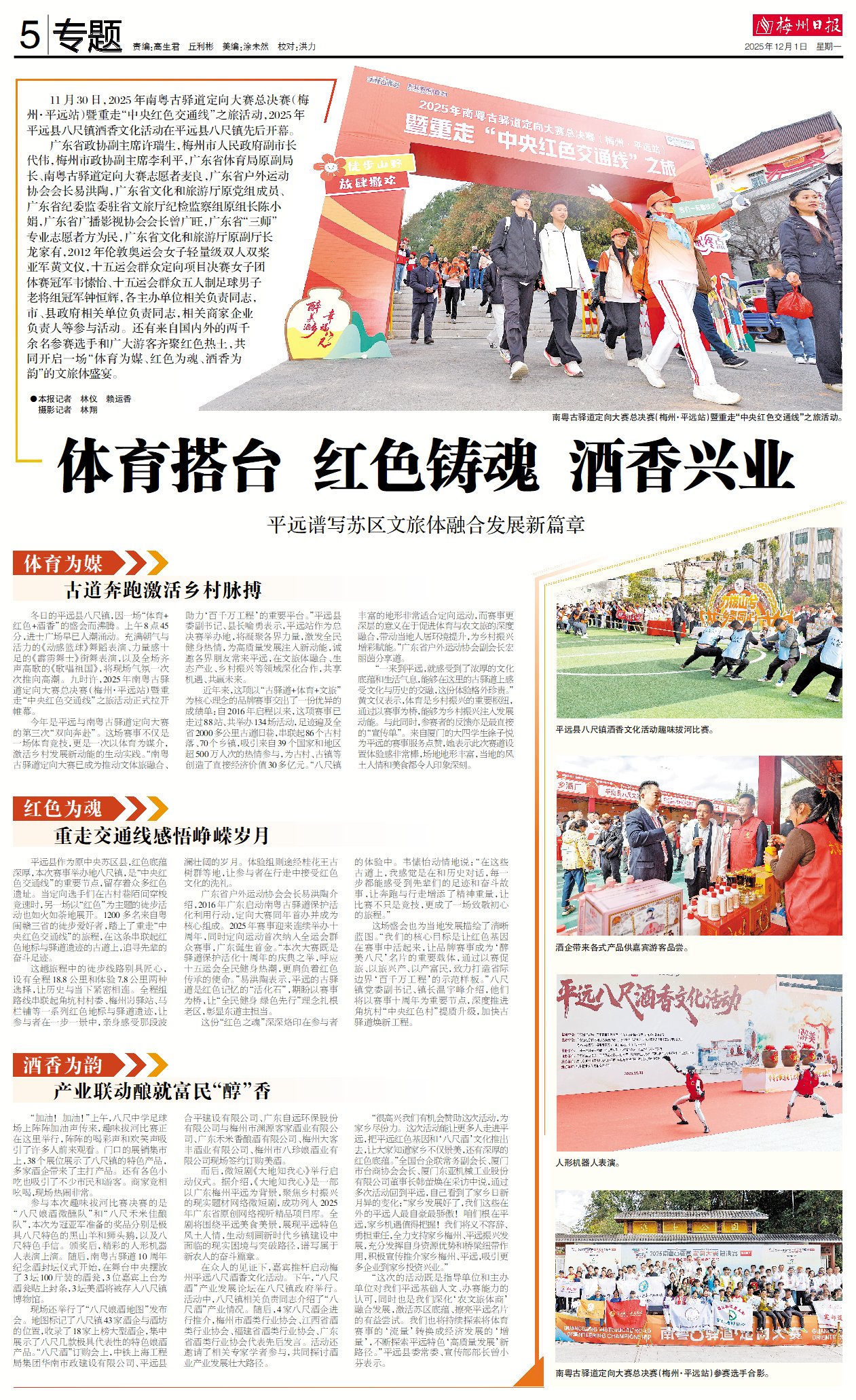 11月30日,2025年南粤古驿道定向大赛总决赛(梅州·平远站)暨重走“中央红色交通线”之旅活动,2025年平远县八尺镇酒香文化活动在平远县八尺镇先后开幕。