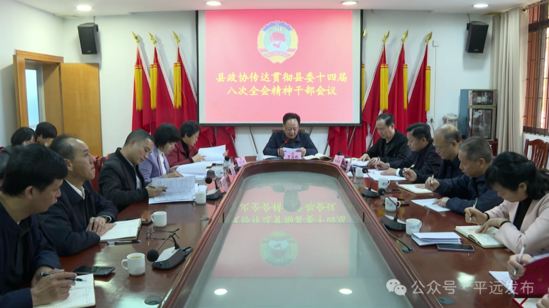 12月8日,平远县政协党组副书记、副主席罗益新主持召开县政协全体干部大会,传达学习省委十三届七次全会、市委八届十一次全会精神,全面贯彻落实县委十四届八次全会精神,动员机关干部和政协委员切实把思想和行动统一到县委决策部署上来,把智慧和力量凝聚到全会确定的目标任务上来,以更高站位、更强担当、更实举措,为奋力推动平远苏区加快振兴、高质量发展贡献政协的智慧和力量。平远县政协副主席韩垂辉、刘兰娇、林欣、李新兰,县政协秘书长黄文通参加会议。