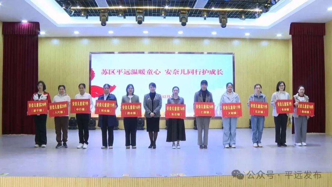 12月17日,深圳市安奈儿股份有限公司代表走进平远山区,为平远县儿童捐赠了首批秋冬衣物,用“一件新衣”点亮冬日微光。平远县委副书记、县长喻勇,副县长王平梅,深圳市安奈儿股份有限公司董事宁文女士参加捐赠活动。