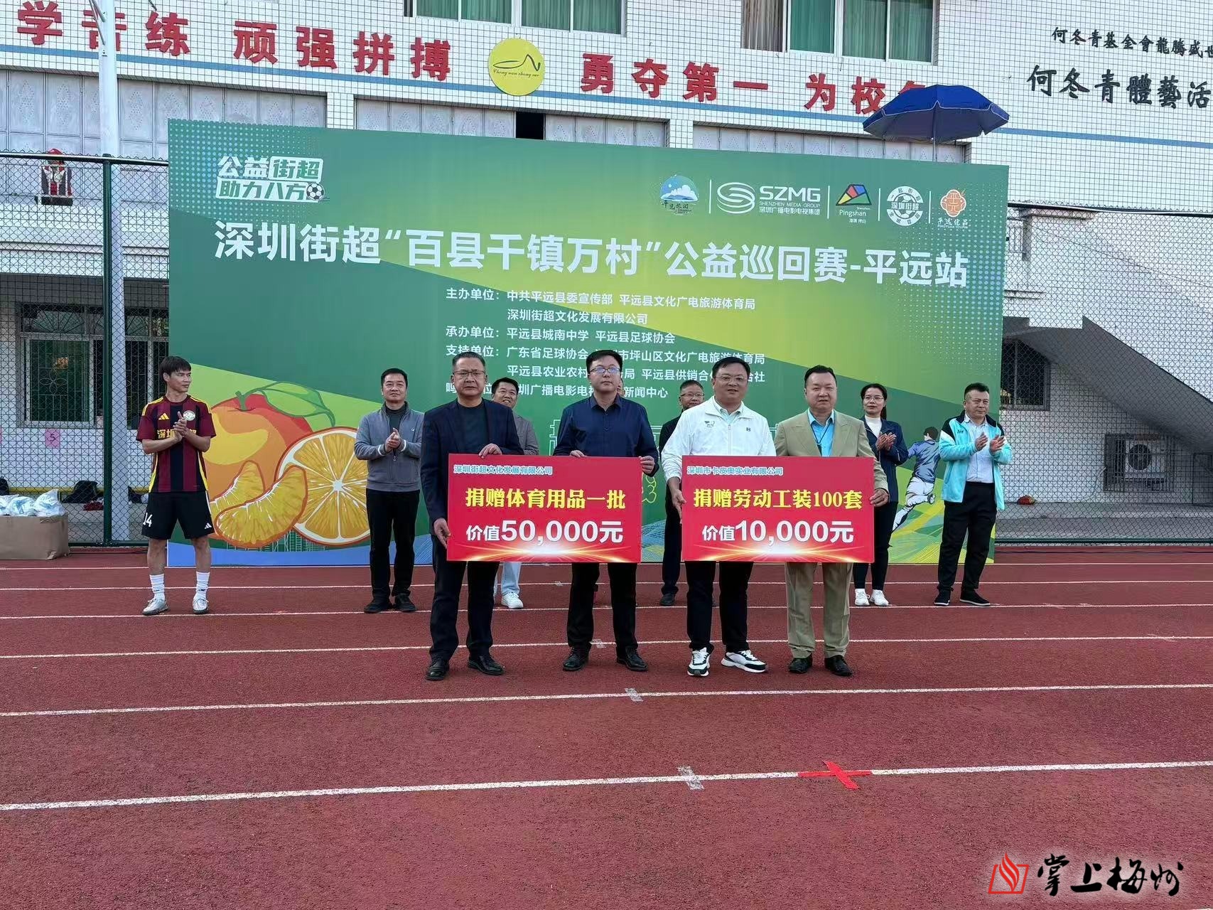 深圳街超以及深圳市卡皮奥实业有限公司向平远县捐赠价值6万元的体育物资。