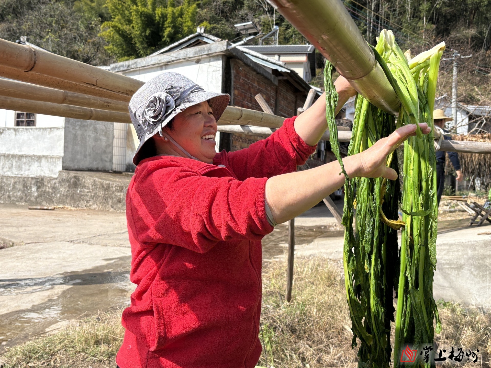 “今年全村冬种芥菜约200亩,有60多农户种植。尽管天气等因素带来一定影响,但梅菜产量仍实现增长,价格也从去年的每斤6元提高到今年的9元至10元。按亩产约400斤计算,预计全村梅菜产业收入可达70多万元,带动农户户均增收超过1.5万元。”谢运扬说道。