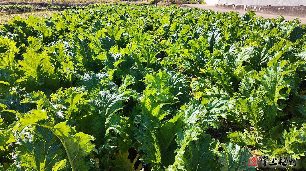 绿油油的芥菜地里,一片片翠绿的芥菜叶在冬日暖阳下舒展。