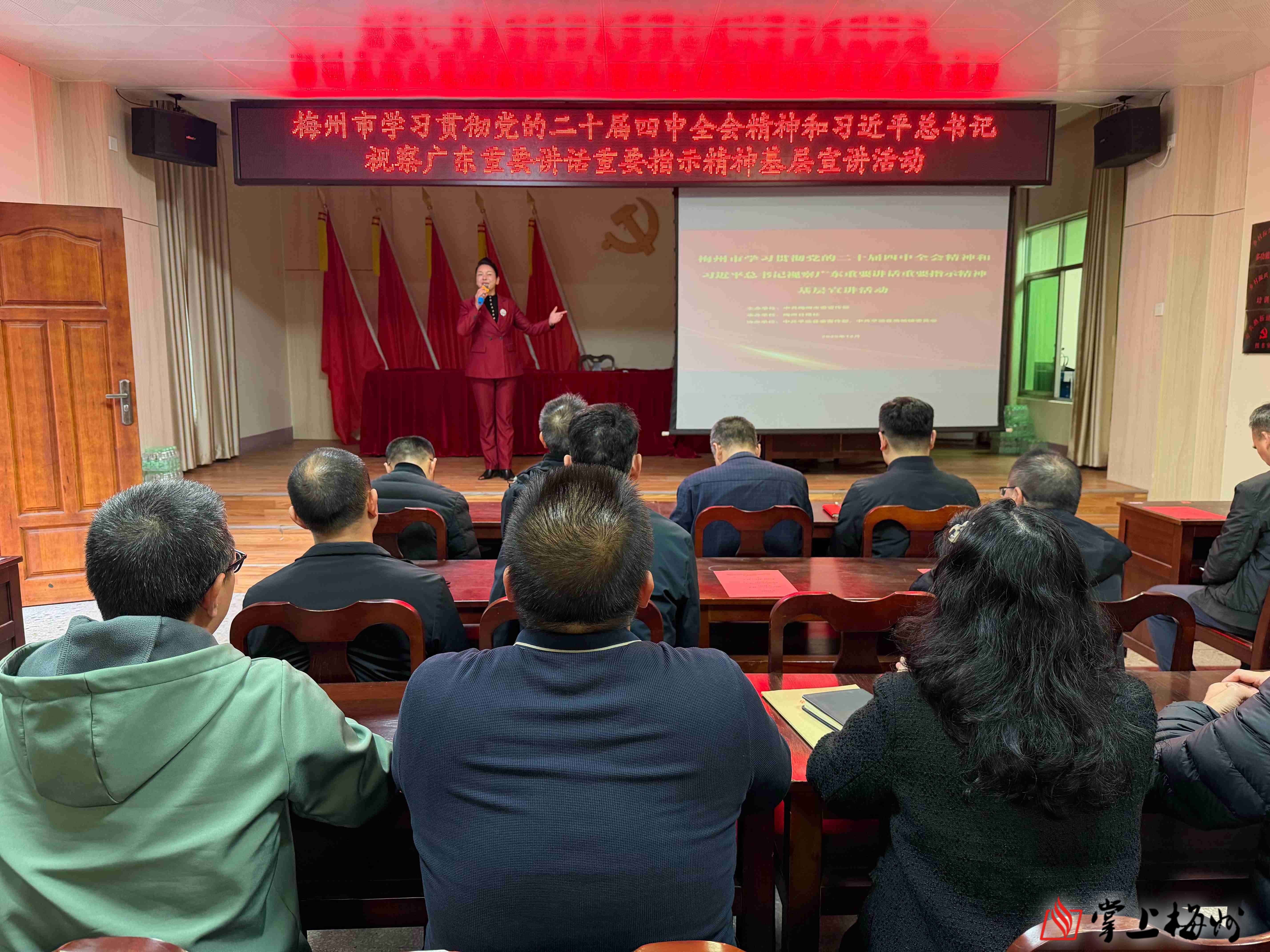 掌上梅州讯 12月19日,梅州市学习贯彻党的二十届四中全会精神基层宣讲活动在平远县热柘镇人民广场举行。活动与学习贯彻习近平总书记视察广东重要讲话重要指示精神相结合,通过理论宣讲、文艺表演、互动竞答等多元形式,引导广大干部群众把思想和行动统一到习近平总书记重要讲话重要指示精神上来,把智慧和力量凝聚到全会确定的各项任务上来。