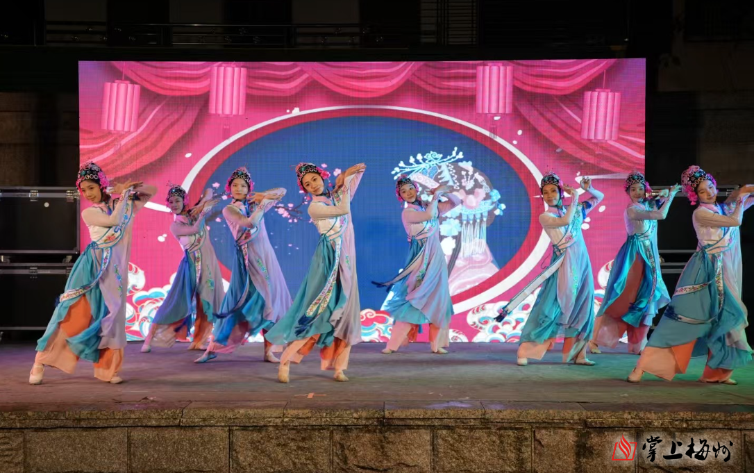 晚7时30分,演出在气势恢宏的《汉乐大锣鼓》中拉开帷幕,平远县热柘华侨学校民乐团的同学们以娴熟的演奏技巧,展现了国家级非遗项目广东汉乐的独特魅力。紧接着,舞蹈《盛世欢歌》以欢快的节奏和优美的舞姿,瞬间点燃了现场气氛。