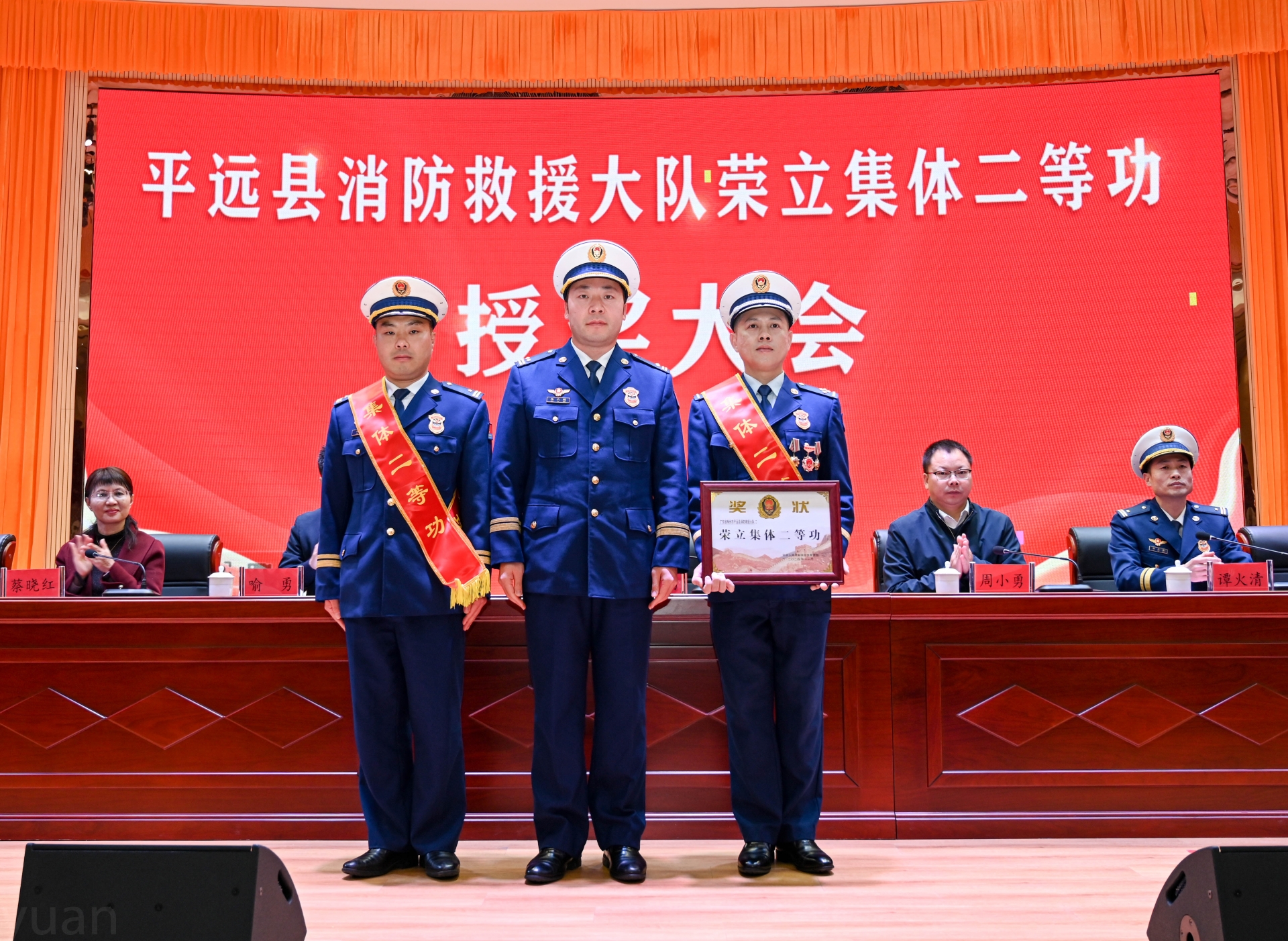 平远县消防救援大队全体指战员将坚定的信仰转化为在烈焰洪水中无畏逆行的磅礴力量。