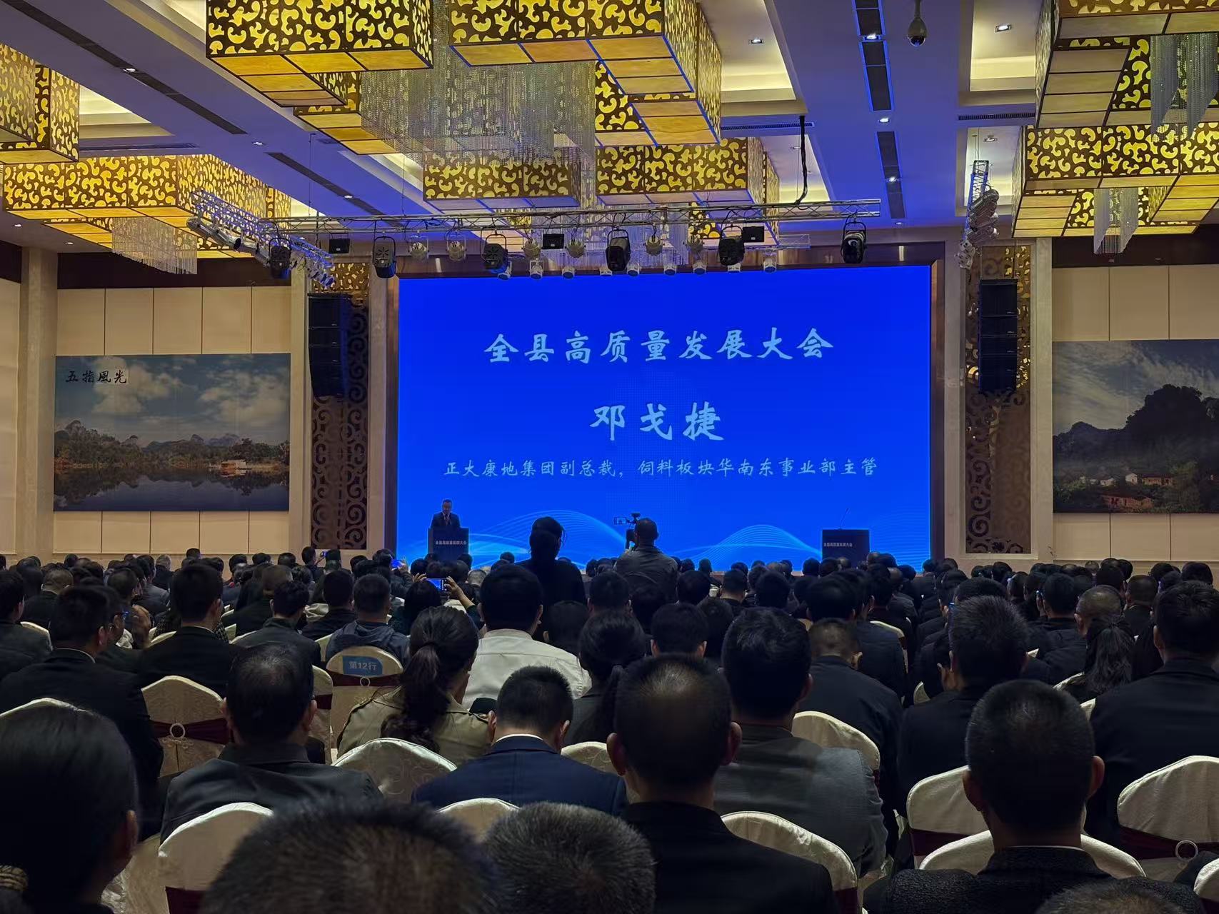 我们将认真贯彻省市县高质量发展大会精神,以梅州为核心,依托正大康地丹系种猪优势与资源,密集开发粤闽赣三省交界区域猪窝、鸡窝,打造正大康地梅州经济生态圈,把饲料这个主业做大做强,实现今年产值达到7亿,力争8亿目标,为“百千万工程”发挥更积极的作用,为平远经济的高质量发展贡献更大力量。