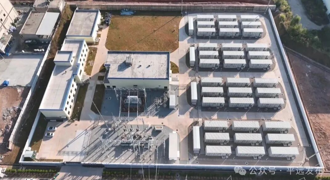 在恒运梅州平远新型智慧独立储能项目(二期)现场,白色的并网舱和储能链节舱整齐排列,舱体之间由清晰的线缆和通道相连,布局规整有序。目前整个工程已全部完工,等待并网通电。