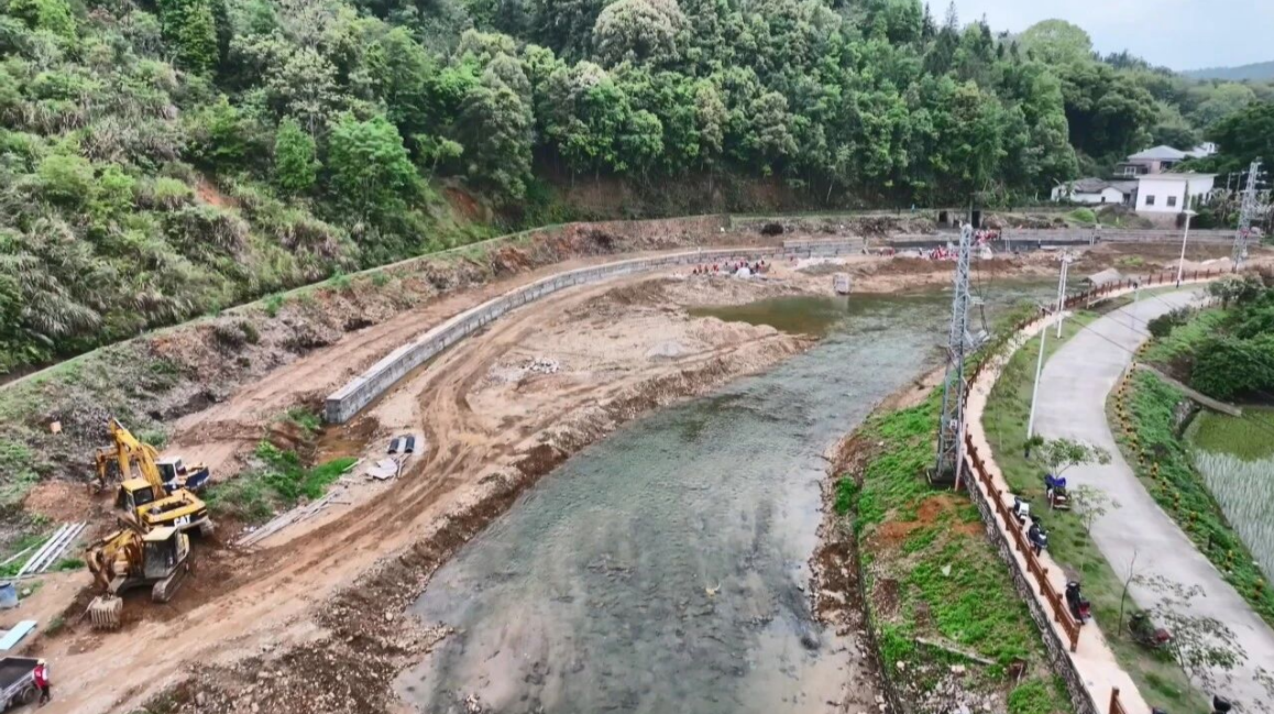 河头镇干部 陈伯祺:“6·16”特大暴雨对柚树河道造成较大损毁,所以河头镇积极争取970万元中央及省市配套资金,对柚树河5公里河道、河岸进行修复和清理,既修复河道加固堤坝,提升防洪能力,又能改善县城水源地生态环境,提升人居环境,同时提供230多个岗位供本地群众务工增收,实现家门口就业。