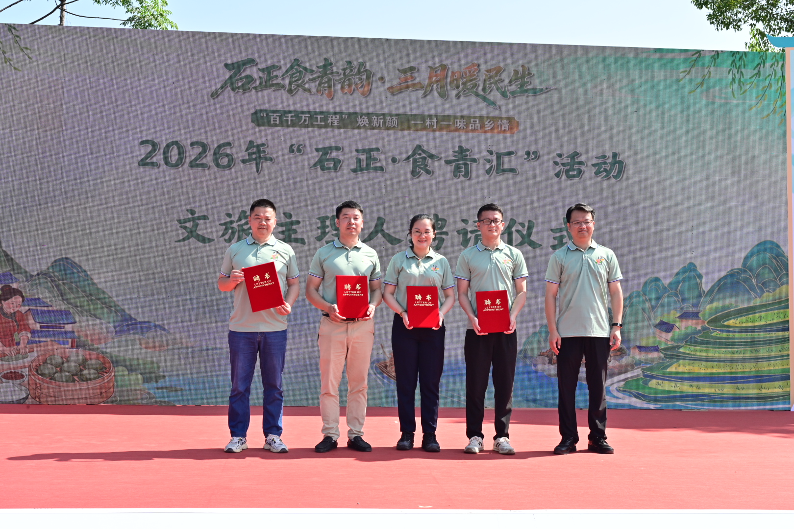 随后,石正镇为首批“文旅主理人”颁发聘书,何柏俊、沈允锐、林文斌、钟春红四位来自文化、茶产业、景区运营、南药梅片特色工业旅游等领域的代表接受聘书,他们将发挥各自专业优势,为石正文旅品牌建设注入新动能。深圳四三草堂书画研究院院长何柏俊作为主理人代表表示,将以专业力量赋能石正,让“食青”品牌走出梅州、走向更广阔的天地。
