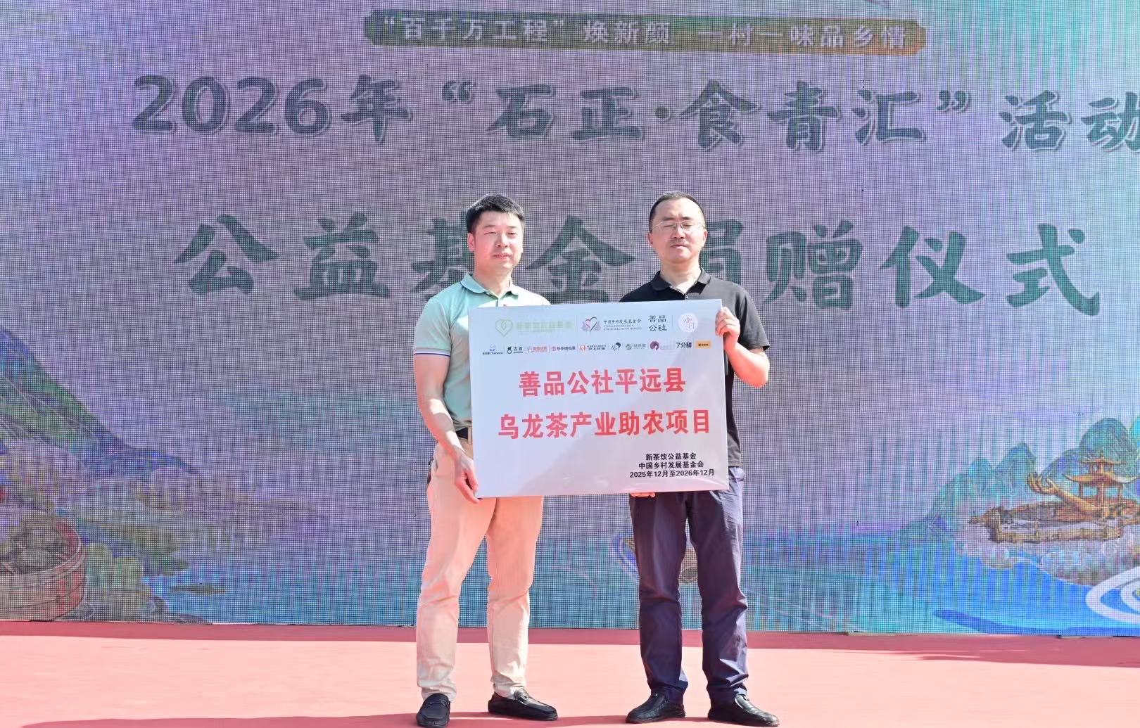在公益捐赠环节,中国乡村发展基金会联合新茶饮公益基金,向平远县石正镇人民政府移交100万元公益资金,启动善品公社平远县乌龙茶产业助农项目,该项目将重点开展加工设备采购、人才培训、产品研发、渠道拓展和品牌打造等工作,助力乌龙茶产业升级和农户增收,打造县域茶产业振兴样板。