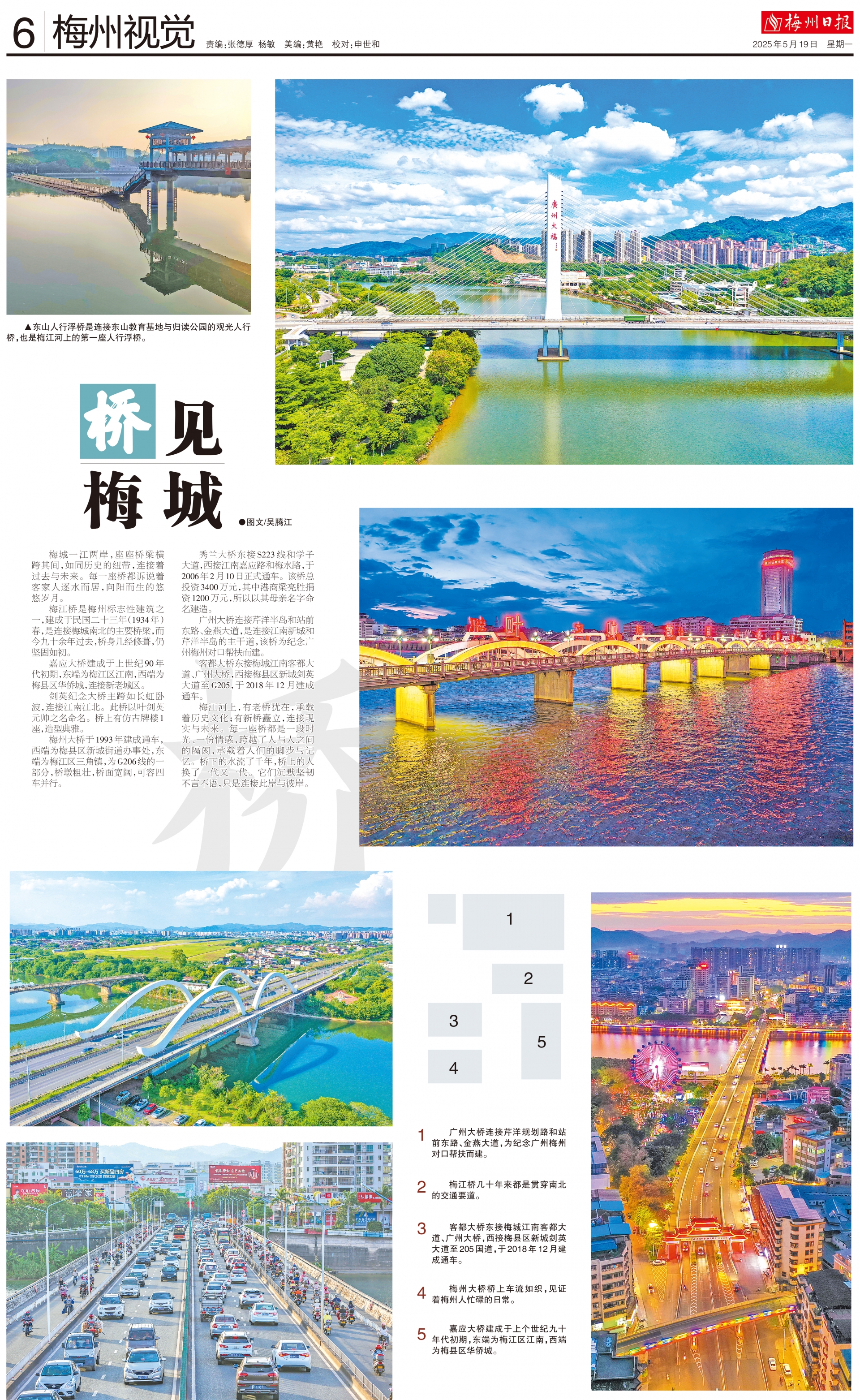 客都大桥东接梅城江南客都大道、广州大桥,西接梅县区新城剑英大道至205国道,于2018年12月建成通车。