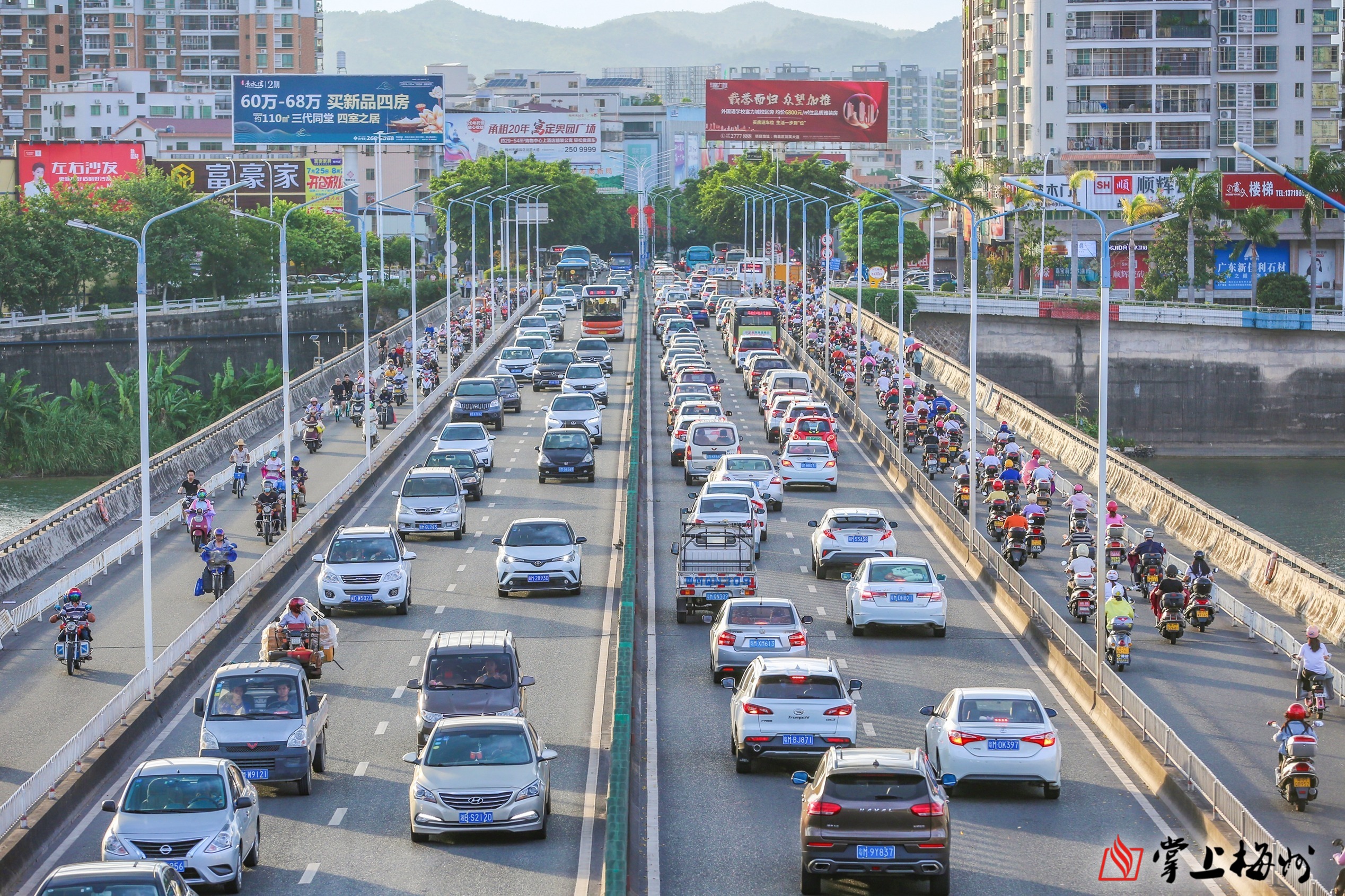 梅州大桥桥上车流如织,见证着梅州人忙碌的日常。
