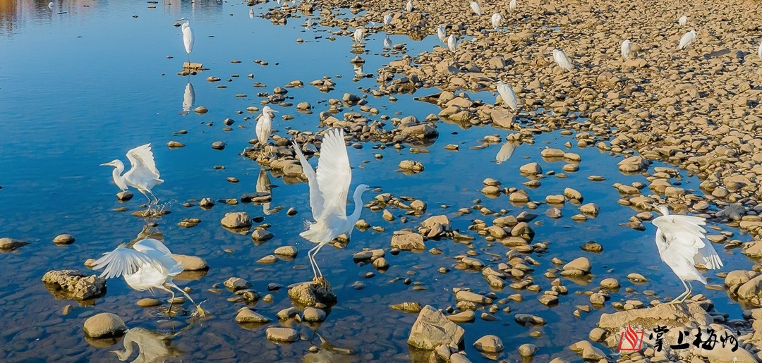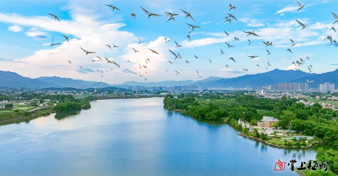 蕉岭县石窟河长潭段生态优美,吸引了大量白鹭在此安家落户。