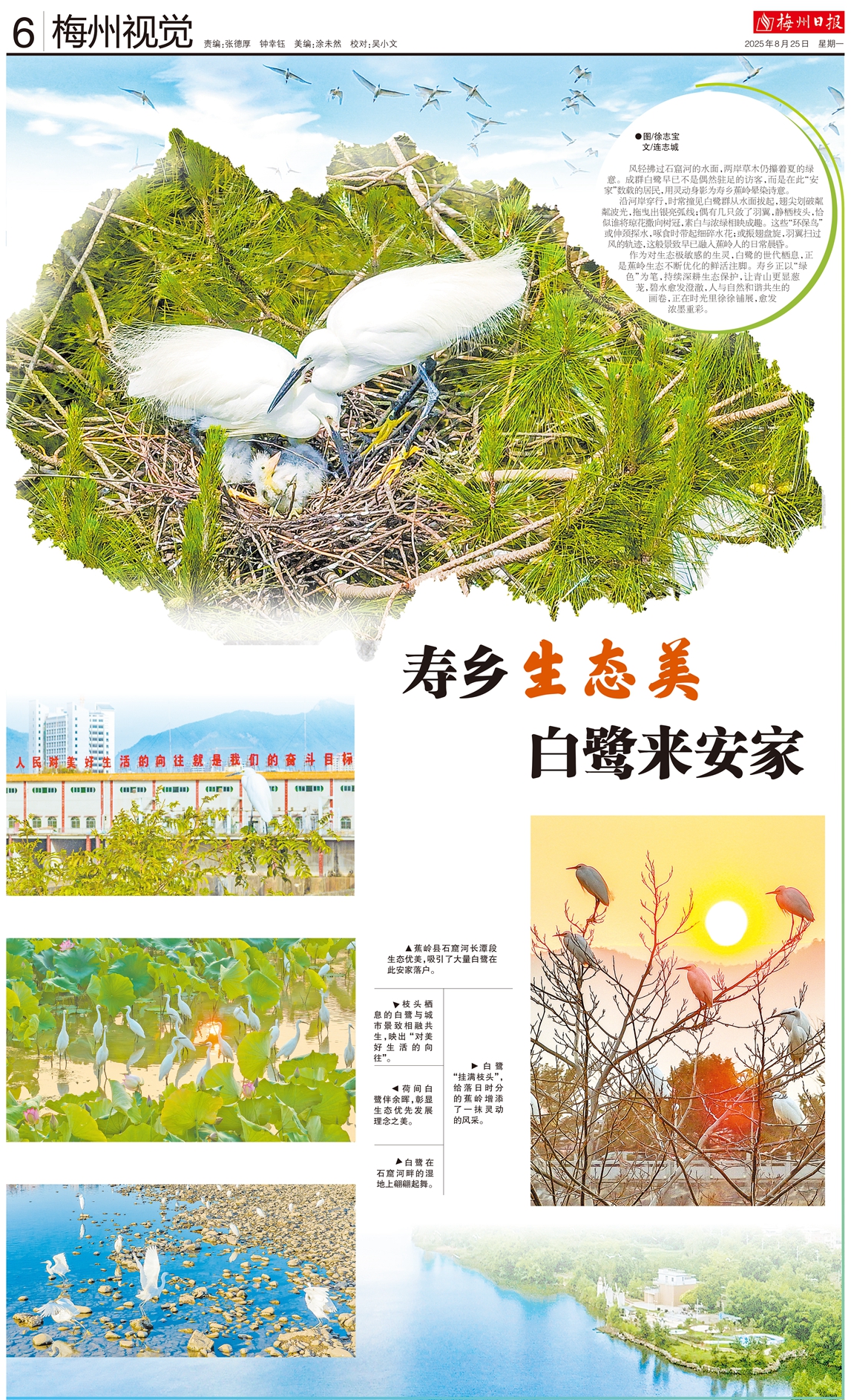 作为对生态极敏感的生灵,白鹭的世代栖息,正是蕉岭生态不断优化的鲜活注脚。寿乡正以“绿色”为笔,持续深耕生态保护,让青山更显葱茏,碧水愈发澄澈,人与自然和谐共生的画卷,正在时光里徐徐铺展,愈发浓墨重彩。