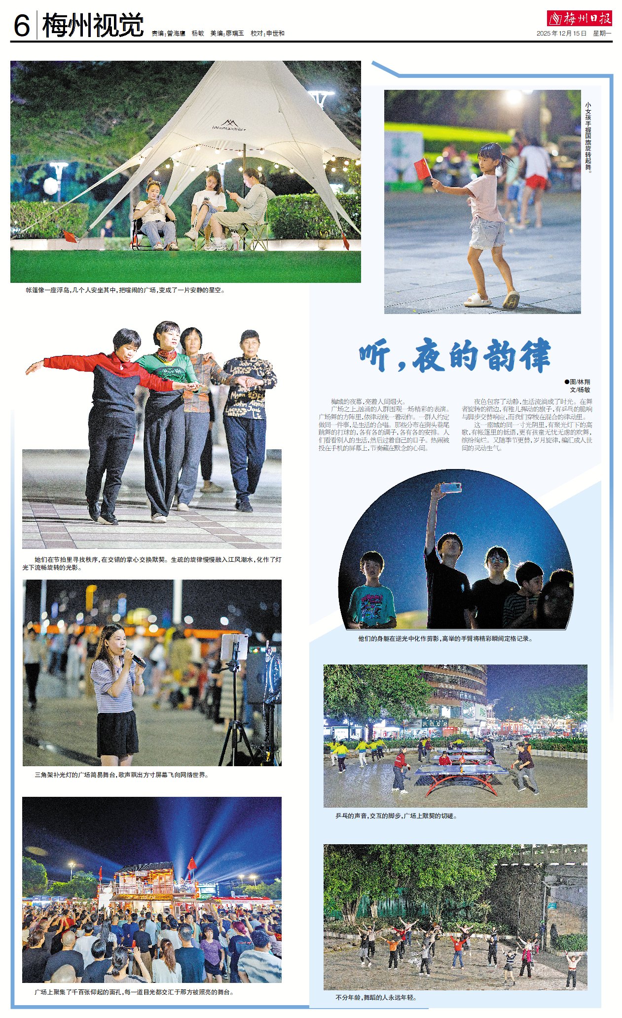 夜色包容了动静,生活流淌成了时光。在舞者旋转的裙边,有稚儿挥动的旗子,有乒乓的脆响与脚步交替响应,而我们穿梭在混合的律动里。