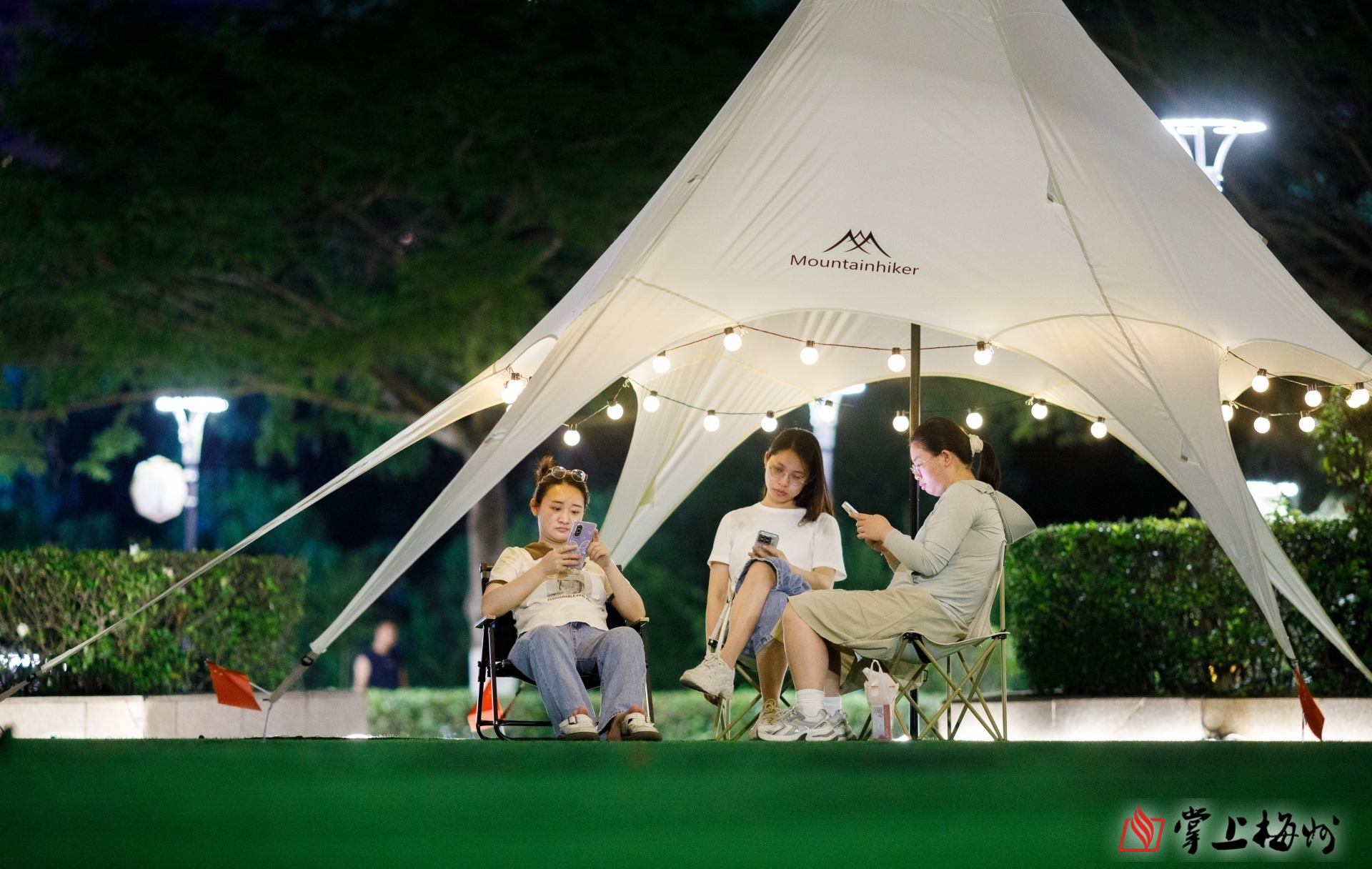 帐篷像一座浮岛,几个人安坐其中,把喧闹的广场,变成了一片安静的星空。