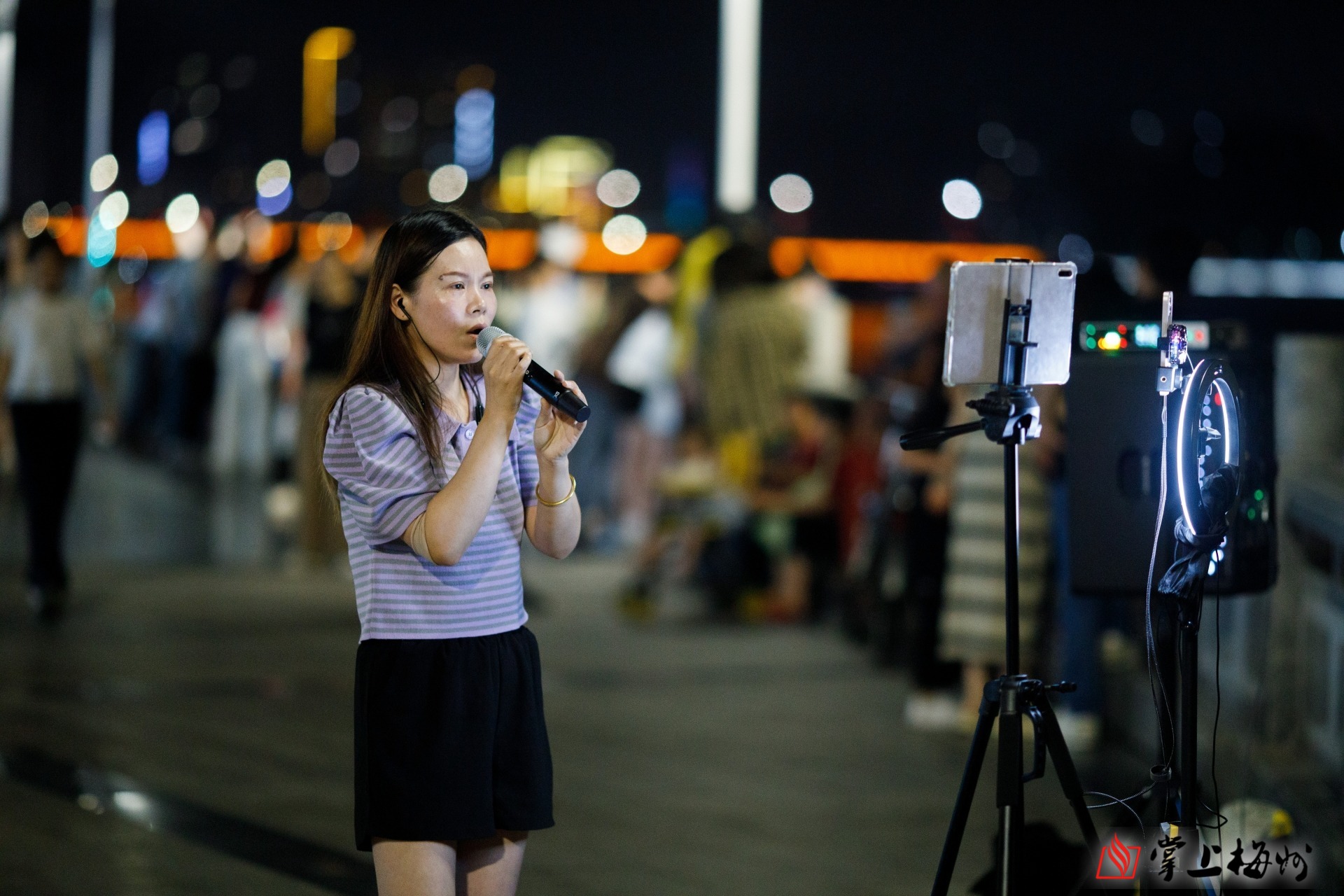 三角架补光灯的广场简易舞台,歌声飘出方寸屏幕飞向网络世界。