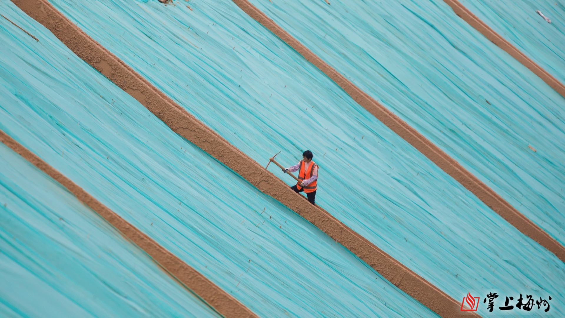 屋顶瓦垄纵横,工人俯身铲除旧瓦,勾勒出劳作的剪影;护坡施工现场,反光背心的亮色在线条分明的坡面跃动,定格建设的瞬间。江畔步道线条蜿蜒,市民奔跑的身影,让寻常日子也溢满活力。