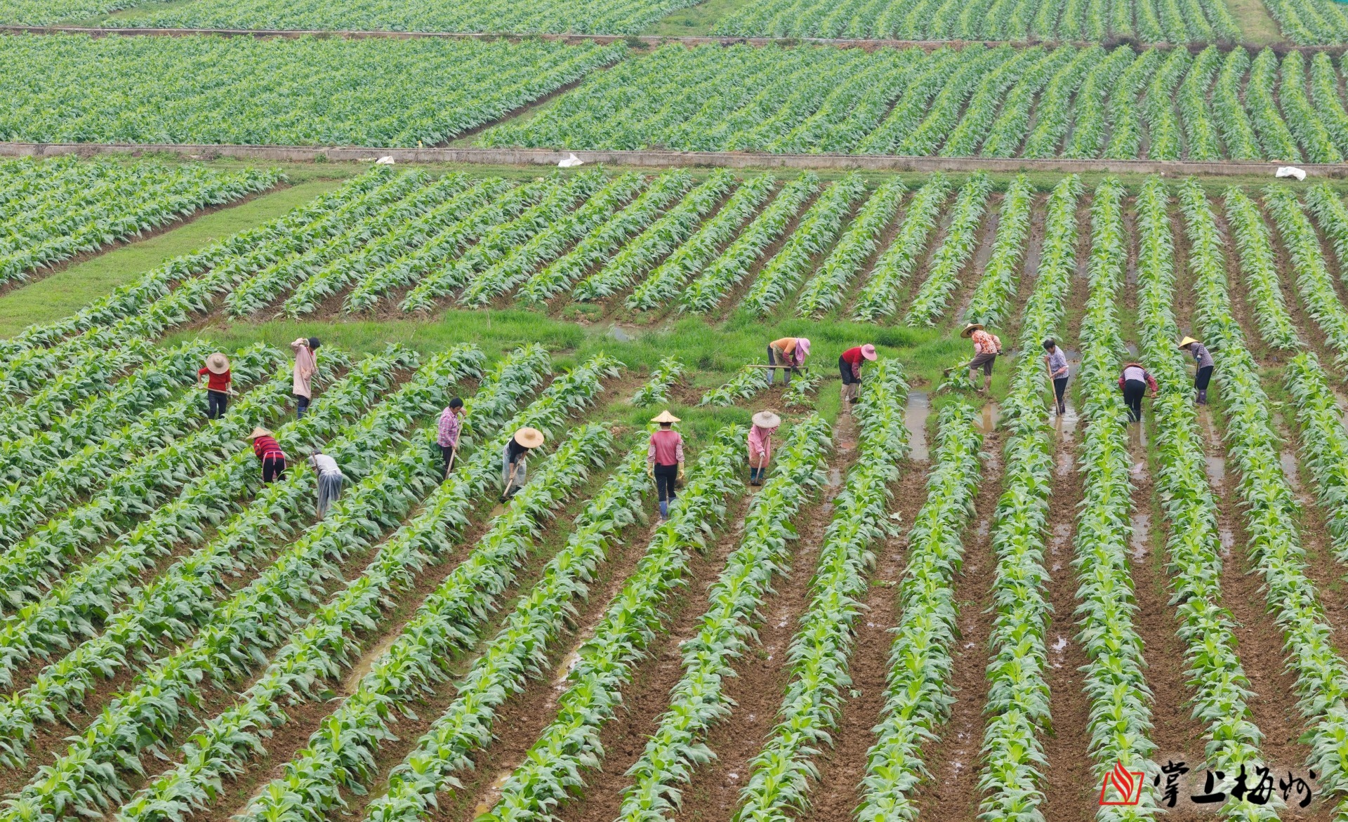 大埔县高陂镇古东村,烟田里一片繁忙景象。