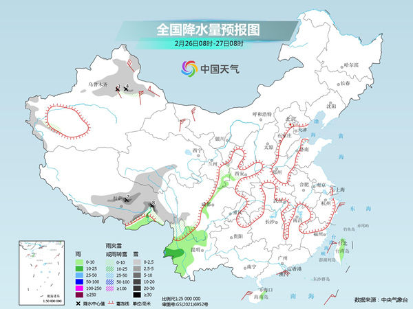 中央气象台预计,今天,新疆南疆西部山区和北疆中东部、西藏中东部、青海南部、云南西北部、川西高原南部等地部分地区有小到中雪或雨夹雪,其中,西藏东部局地有大雪(5~8毫米)。云南西部和北部、四川南部、台湾岛东部等地部分地区有小雨,其中,云南西部局地有中雨或大雨。
