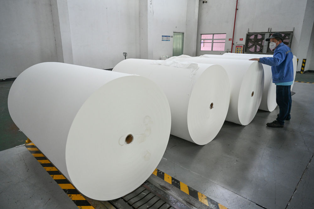 工人在福建泉州晋江市一家纸巾生产企业作业(2022年3月21日摄)。新华社记者 周义 摄