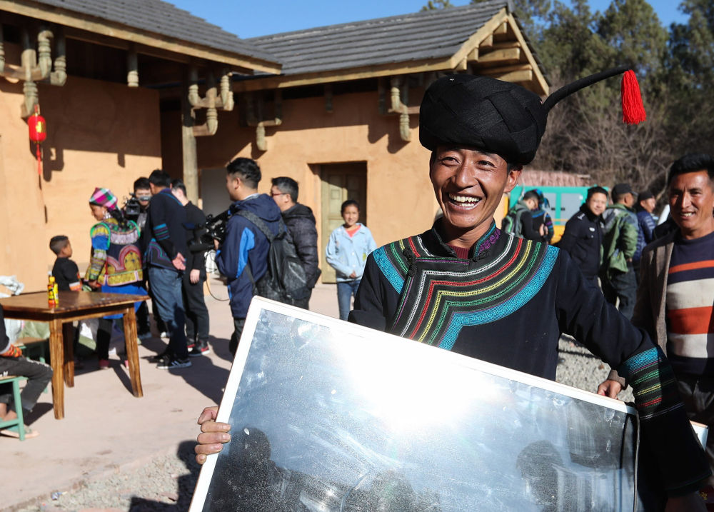 在四川省昭觉县三河村的易地扶贫安置点,彝族群众马海日聪喜搬新居(2019年2月11日摄)。新华社记者 江宏景 摄