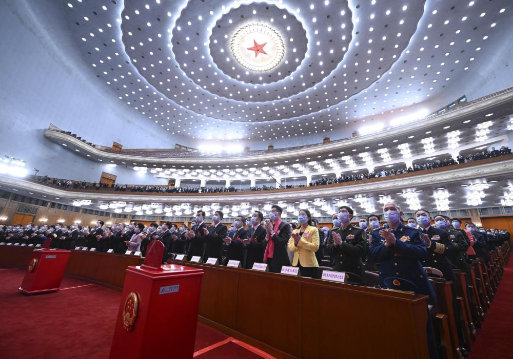 3月10日,十四届全国人大一次会议在北京人民大会堂举行第三次全体会议。新华社记者 翟健岚 摄
