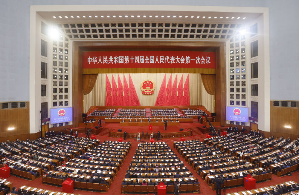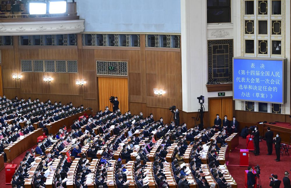 3月10日,十四届全国人大一次会议在北京人民大会堂举行第三次全体会议。新华社记者 张铖 摄