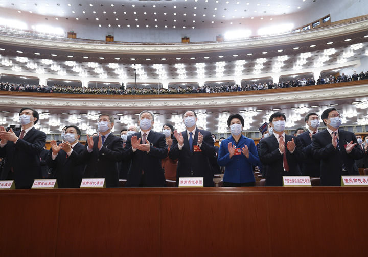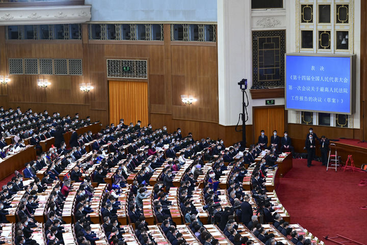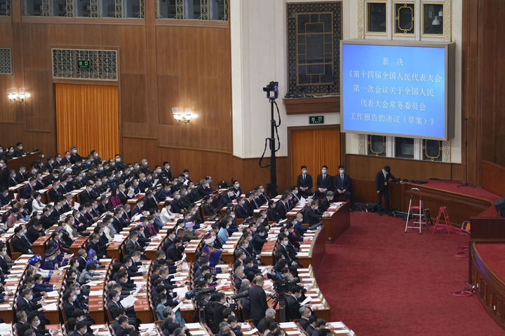 3月13日,第十四届全国人民代表大会第一次会议在北京人民大会堂举行闭幕会。新华社记者 翟健岚 摄
