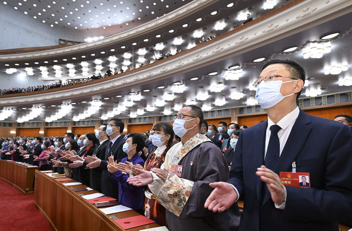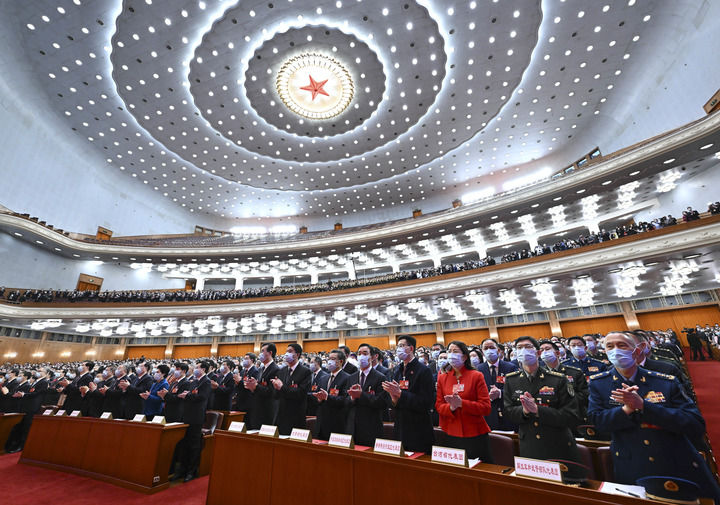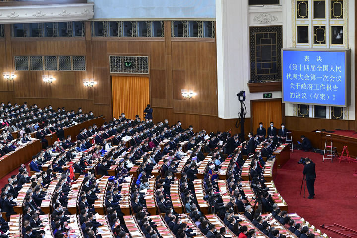 3月13日,第十四届全国人民代表大会第一次会议在北京人民大会堂举行闭幕会。新华社记者 饶爱民 摄