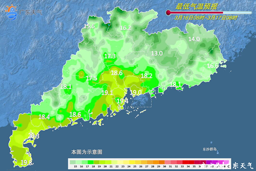 18日,粤西和珠三角多云到阴天,局部有零星小雨,其余市县多云间阴天。最低气温:韶关北部、清远北部和肇庆北部市县13℃~16℃,其余市县18℃~21℃。