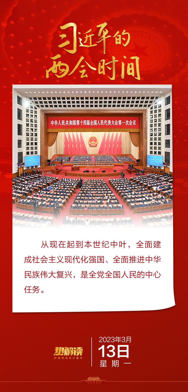3月13日,第十四届全国人民代表大会第一次会议闭幕,习近平主席发表重要讲话,其中首次提到全党全国人民的中心任务。