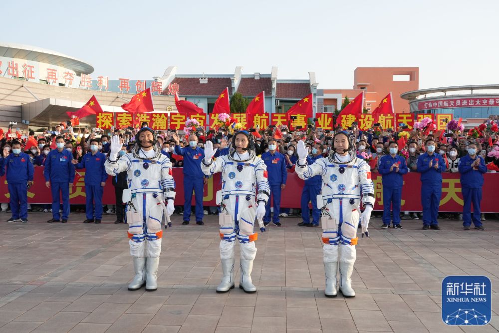 6时44分,中国载人航天工程总指挥、空间站应用与发展阶段飞行任务总指挥部总指挥长许学强下达“出发”命令,景海鹏、朱杨柱、桂海潮3名航天员领命出征。
