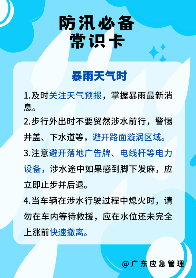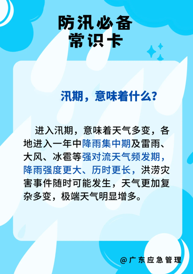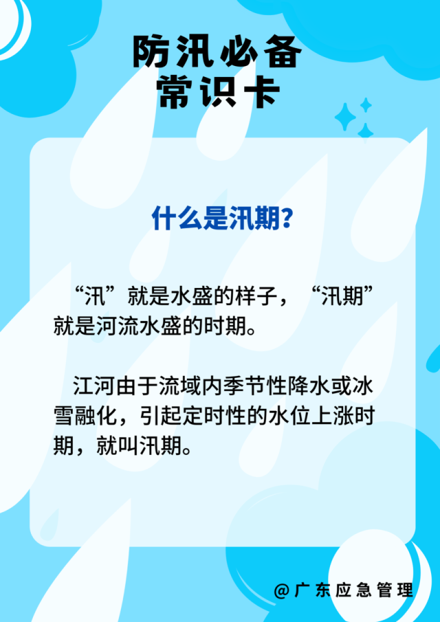 汛期暴雨局地性强、突发性强,可能引发山洪、山体滑坡等自然灾害。如何安全度过汛期?面对自然灾害怎样避险自救?保存防汛必备常识卡,一起平安度汛。