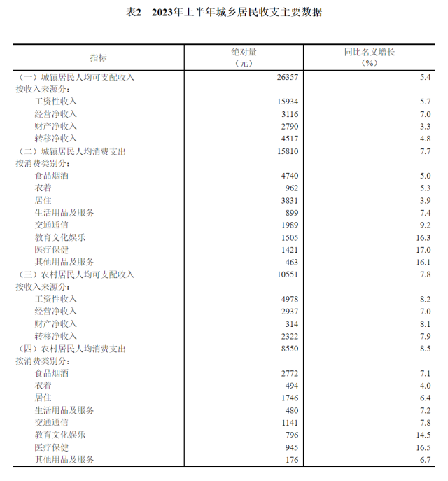 7月17日,国家统计局发布2023年上半年居民收入和消费支出情况。全文如下: