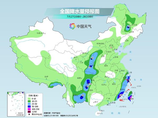 明天,黑龙江西南部和中部、西藏东南部、西北地区东部、江南东部和南部、西南地区东部和南部、广东东南部、台湾岛等地部分地区有中到大雨,其中,吉林西部、陕西中部、浙江中北部、福建东南部、四川盆地东南部、重庆西部、贵州西北部、云南东南部、广东东南部、台湾岛东部和南部等地部分地区有暴雨或大暴雨(100毫米~300毫米)。
