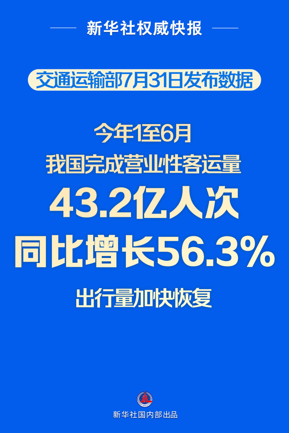 我国完成营业性客运量43.2亿人次,同比增长56.3%