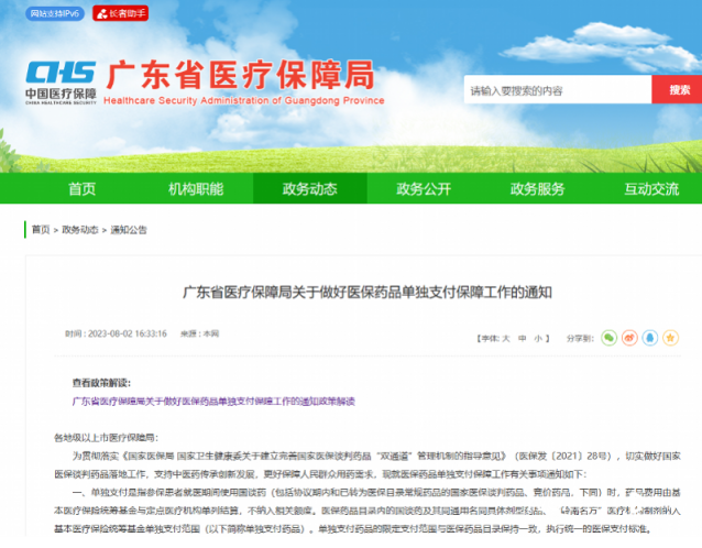 8月2日,记者从广东省医保局获悉,切实做好国家医保谈判药品落地工作,支持中医药传承创新发展,更好保障人民群众用药需求,广东省医保局官网发布《广东省医疗保障局关于做好医保药品单独支付保障工作的通知》(以下简称“《通知》”)。