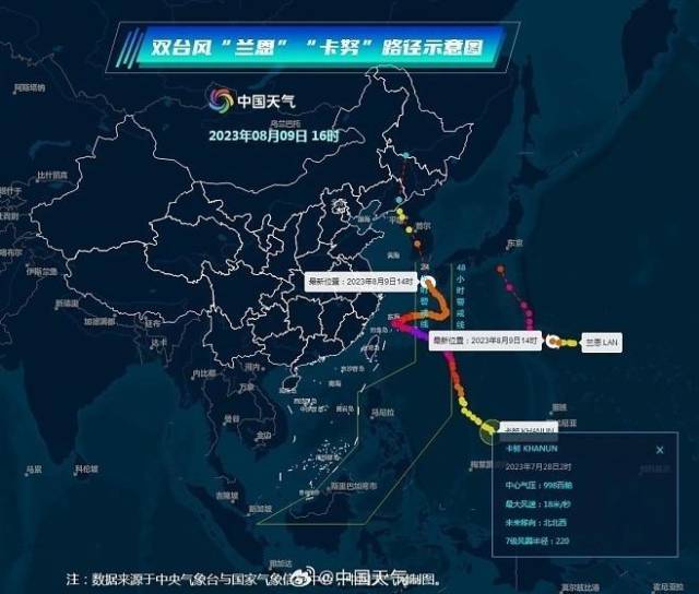 最近的台风是一个接一个,6号“卡努”还在海上徘徊,,7号“兰恩”又紧接着生成了。