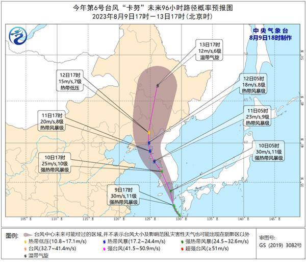 今年第6号台风“卡努”路径兜兜转转,预计将于10日上午在朝鲜半岛南部沿海登陆(25-30米/秒,10-11级,强热带风暴级),登陆后强度逐渐减弱。11日夜间至12日凌晨,移入我国东北地区(热带风暴或热带低压),逐渐减弱变性。