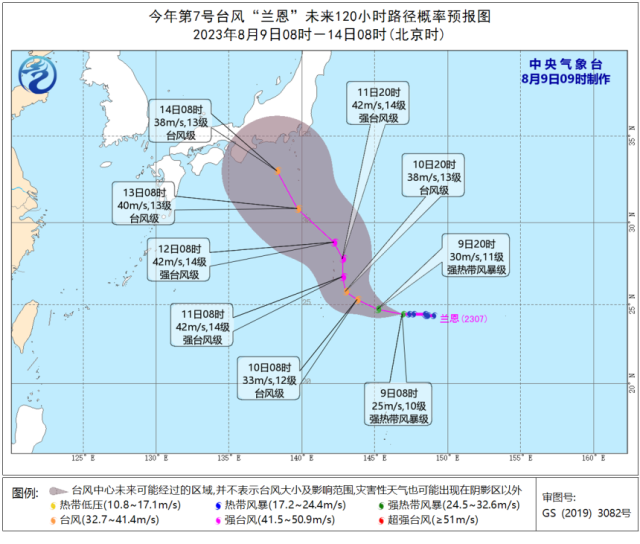 截至9日20时,台风“兰恩”位于北纬24.8°、东经145.5°,最大风速30m/s,预计“兰恩”将以每小时15公里左右的速度向西偏北方向移动,强度逐渐加强。从预测的路径看,对广东影响不大。