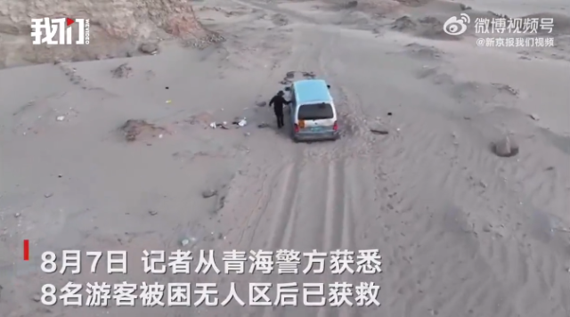 8月6日,海西州警方接到广东一女子报警称,其母亲等8人被困在无人区,且断水、断食,乘坐的车辆出现故障,8人中有4名老人和2名儿童。6日晚,无人机在离车辆约5公里外发现6名失联人员后民警徒步找到。7日凌晨,最后2名游客被找到,8名游客身体状况良好。