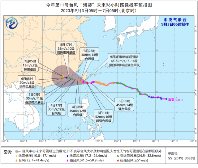 根据中央气象台今天6时发布的台风预警显示:“海葵”目前的强度已达到强台风级,今天(3日)凌晨5时其中心位于台湾省台东市东偏南方向约185公里的海面上,中心附近最大风力达到14级。