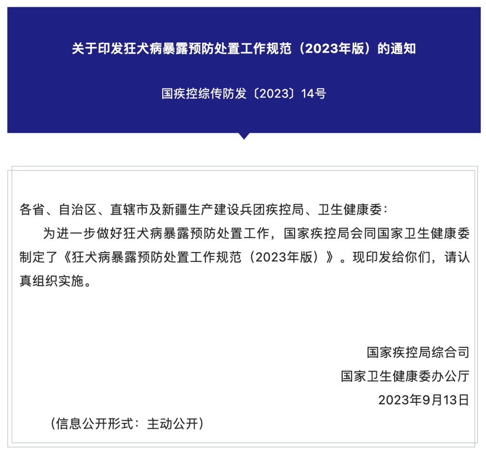 增加消毒剂使用种类、优化首次暴露后的疫苗接种程序、扩充高暴露风险者范围、将狂犬病暴露分为三级……记者9月16日从国家疾控局获悉,国家疾控局、国家卫生健康委近日印发《狂犬病暴露预防处置工作规范(2023年版)》,为进一步做好狂犬病暴露预防处置工作作出指引。