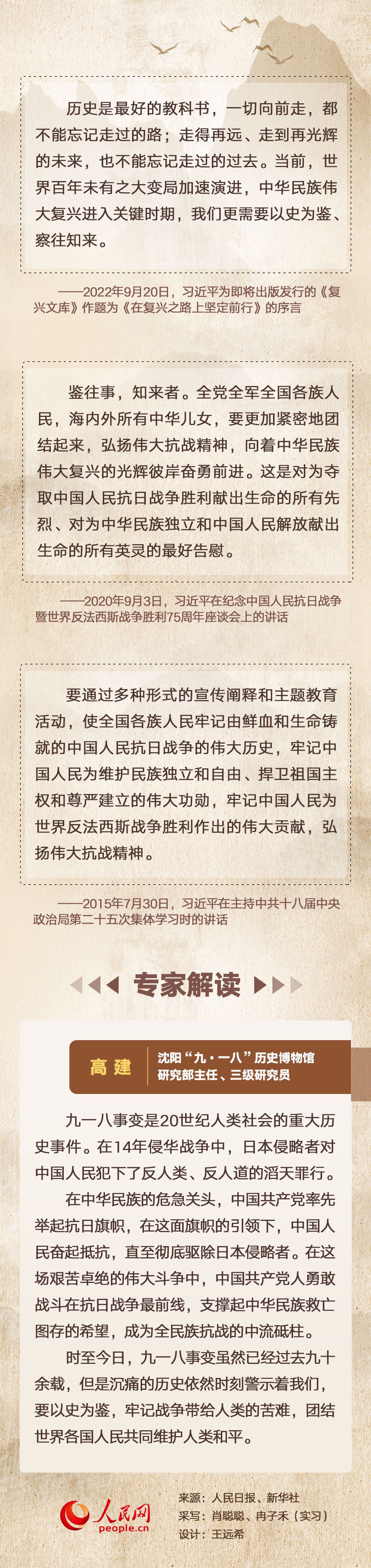 勿忘九一八!总书记这些话语掷地有声 2023-09-18 18:03 人民网 0 1931年9月18日,九一八事变爆发。自此,中华民族开启长达14年的浴血奋战。不忘国耻,警钟长鸣!人民网带您重温习近平总书记重要讲话并邀请专家解读。 编辑:张晓珊 审核:练海林