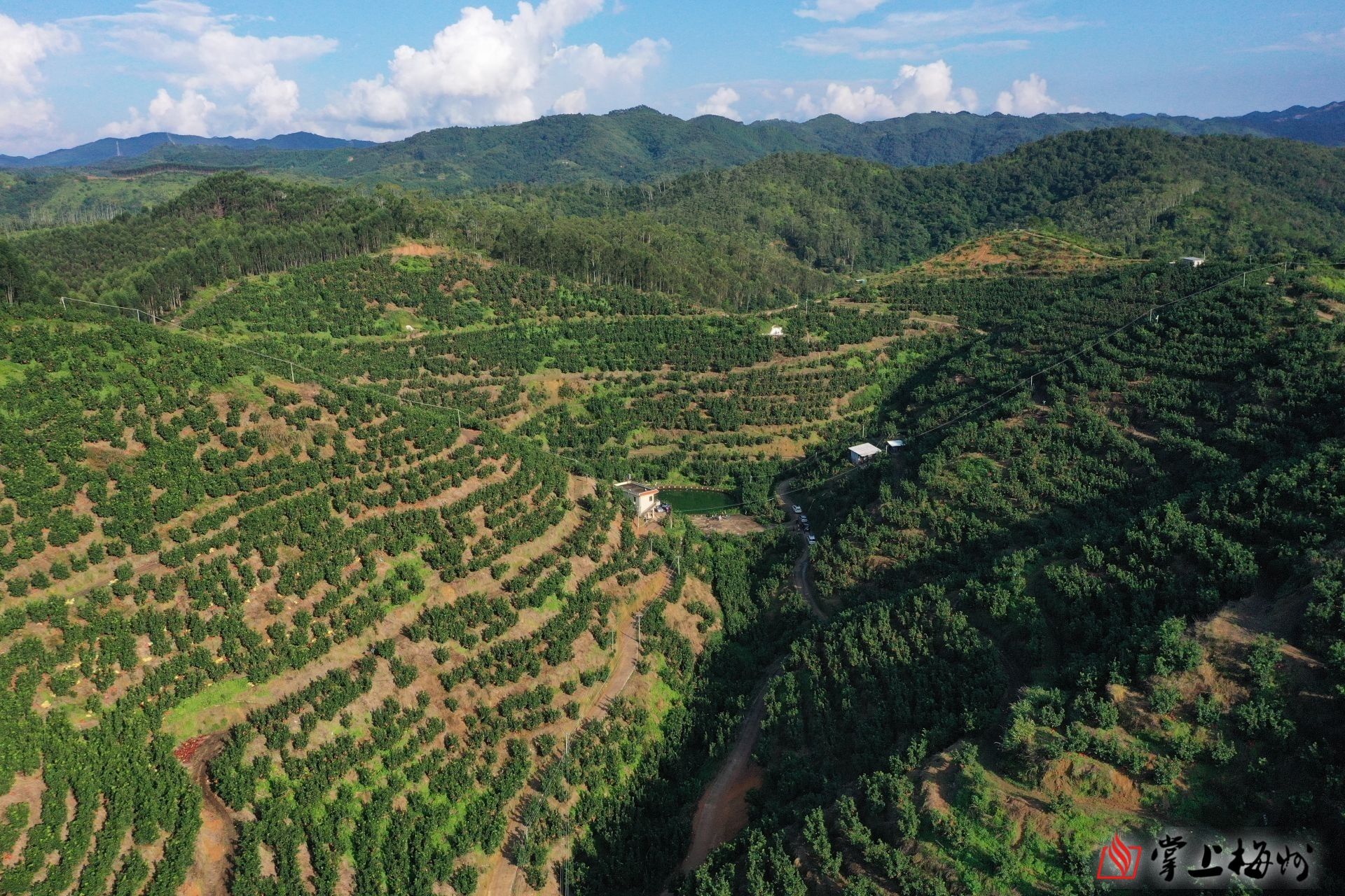 △ 近段时间,五华蜜柚陆续采摘上市,翠绿的柚树和金黄柚果扮靓了山头。(张炳锋 摄)